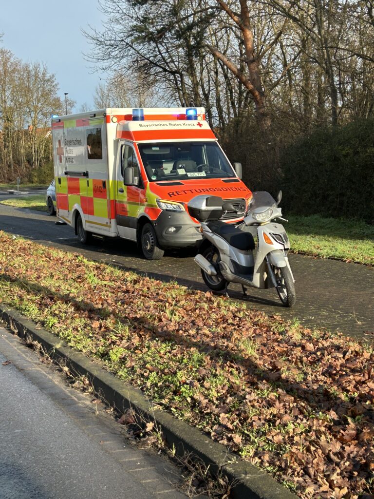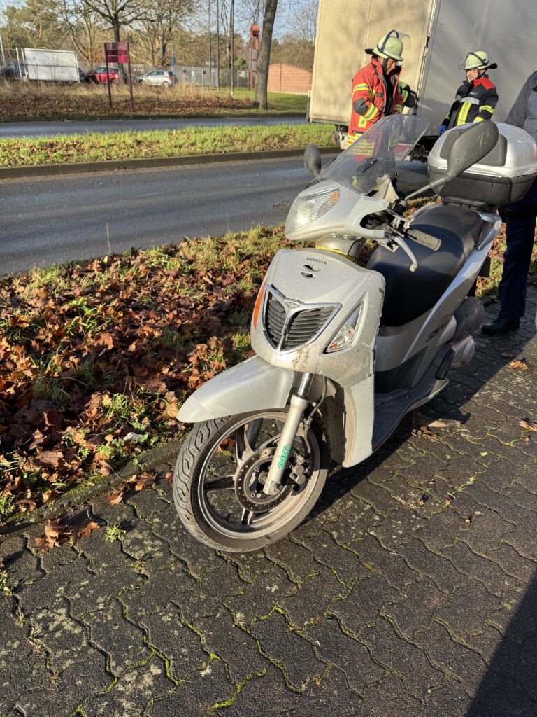 Ein Rollerfahrer war durch die starke Bremsung und die nassen Fahrbahnverhältnisse gestürzt und mit seinem Roller in einen Transporter gerutscht. Wir betreuten die verletzte Person bis zum Eintreffen des Rettungsdienstes und übernahmen die Verkehrslenkung.